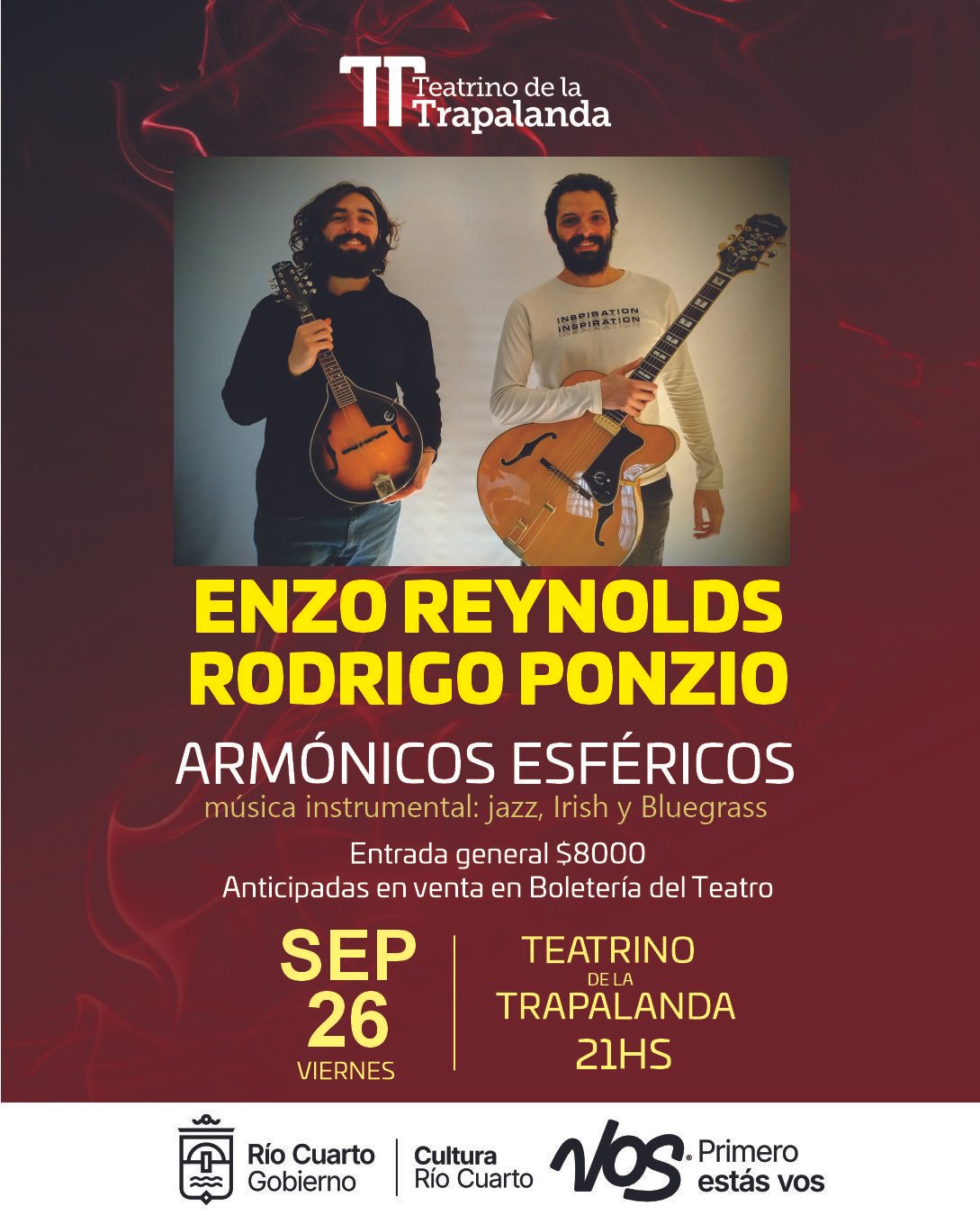 Enzo Reynolds y Rodrigo Ponzio presentan un espectáculo de música instrumental: jazz, irish y bluegrass.