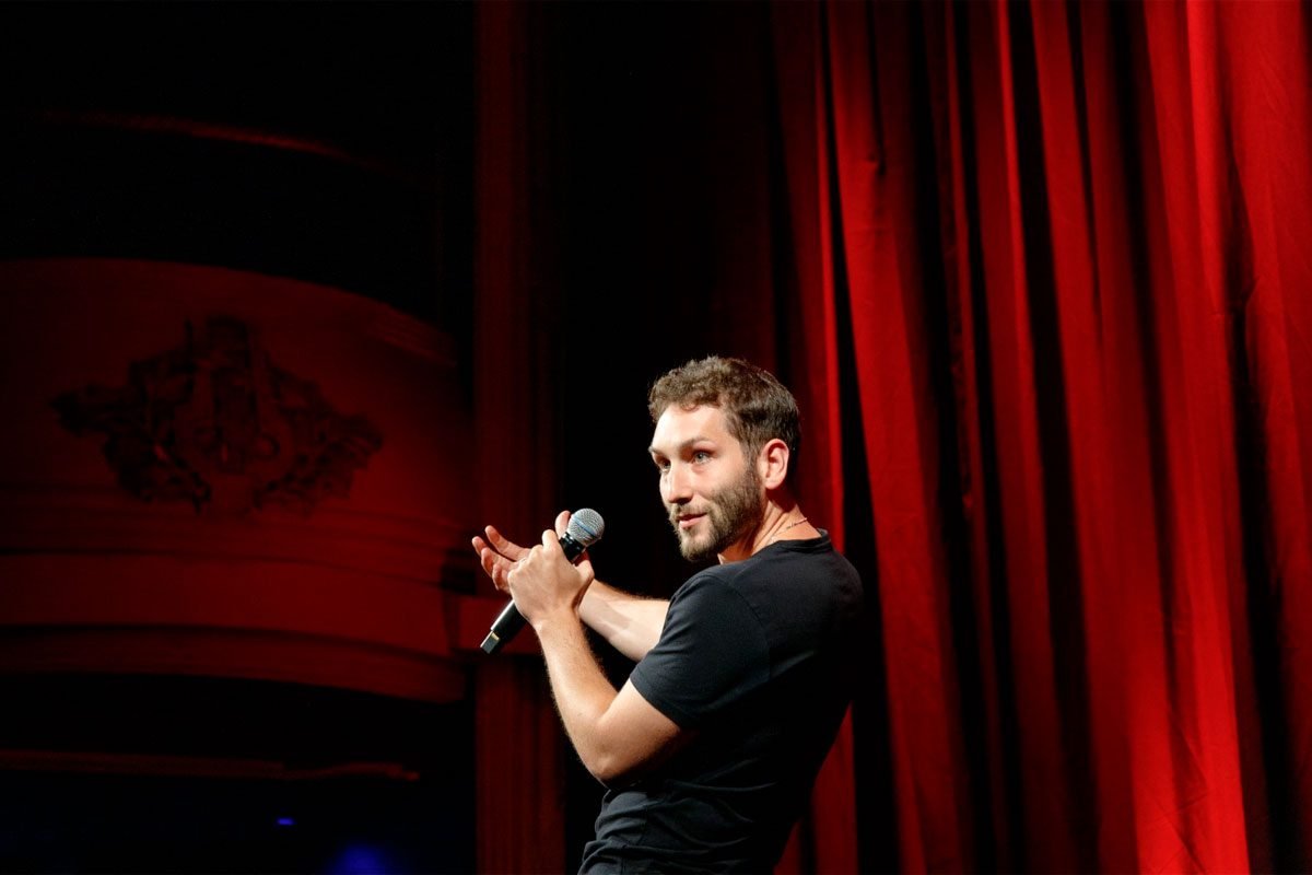 A lo largo de su performance, el humorista comparte anécdotas desafiantes y vivencias absurdas que componen su universo cómico. Cada relato está diseñado para resonar con el público, evocando emociones y risas.
