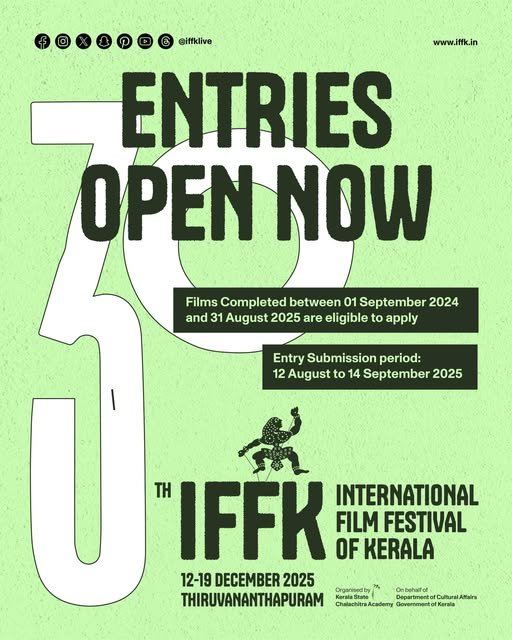 El 30° Festival Internacional de Cine de Kerala (IFFK) se llevará a cabo del 12 al 19 de diciembre de 2025 en la hermosa ciudad de Trivandrum, India.